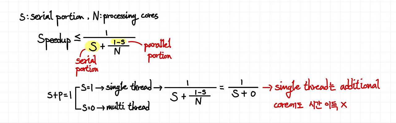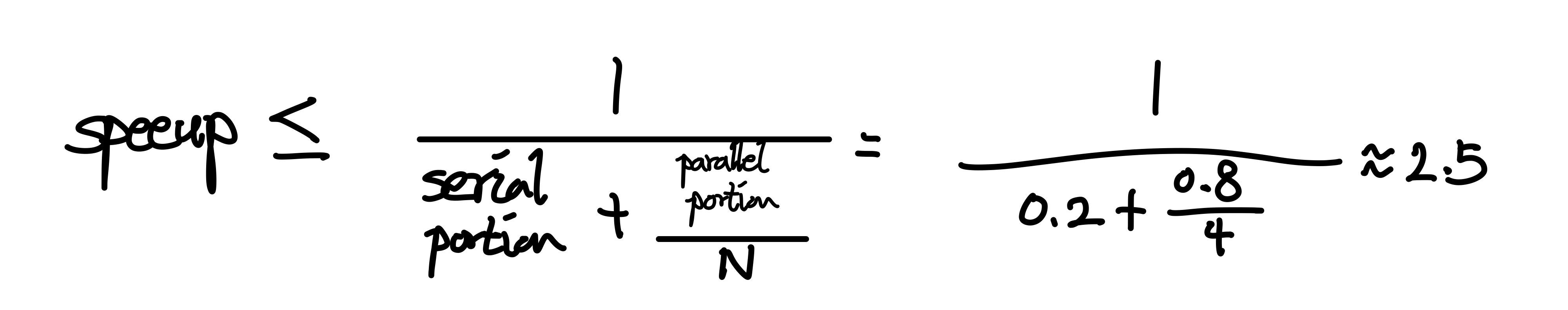 (1) program의 serial portion이 20%, 4개의 core가 있을 때, Amdahl's law에 따른 speedup