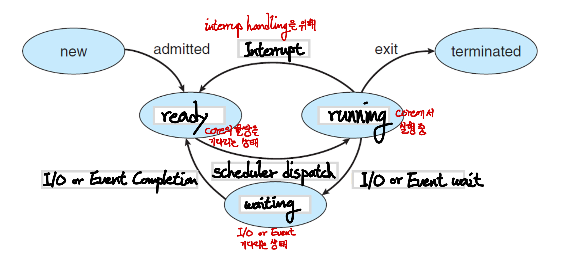 - context switching 사이에, Process Control Block가 어떻게 사용되는지 서술