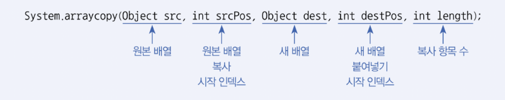 - System.arraycopy(Object src, int srcPos, Object dest, int destPos, int length): 배열 복사 method