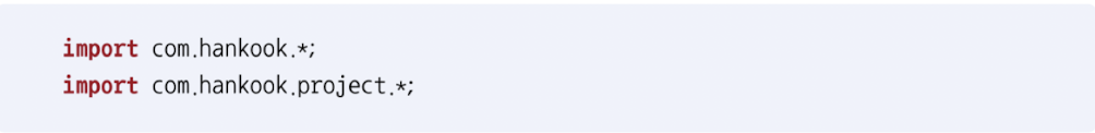 - 다른 패키지에 있는 클래스를 사용하려면 import 문을 이용하여 어떤 패키지의 클래스를 사용하는지 명시