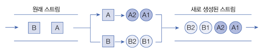 - 오리지널 스트림과 집계 처리 사이의 중간 스트림들은 최종 처리를 위해 요소를 걸러내거나(필터링), 요소를 변환시키거나(매핑), 정렬하는 작업을 수행