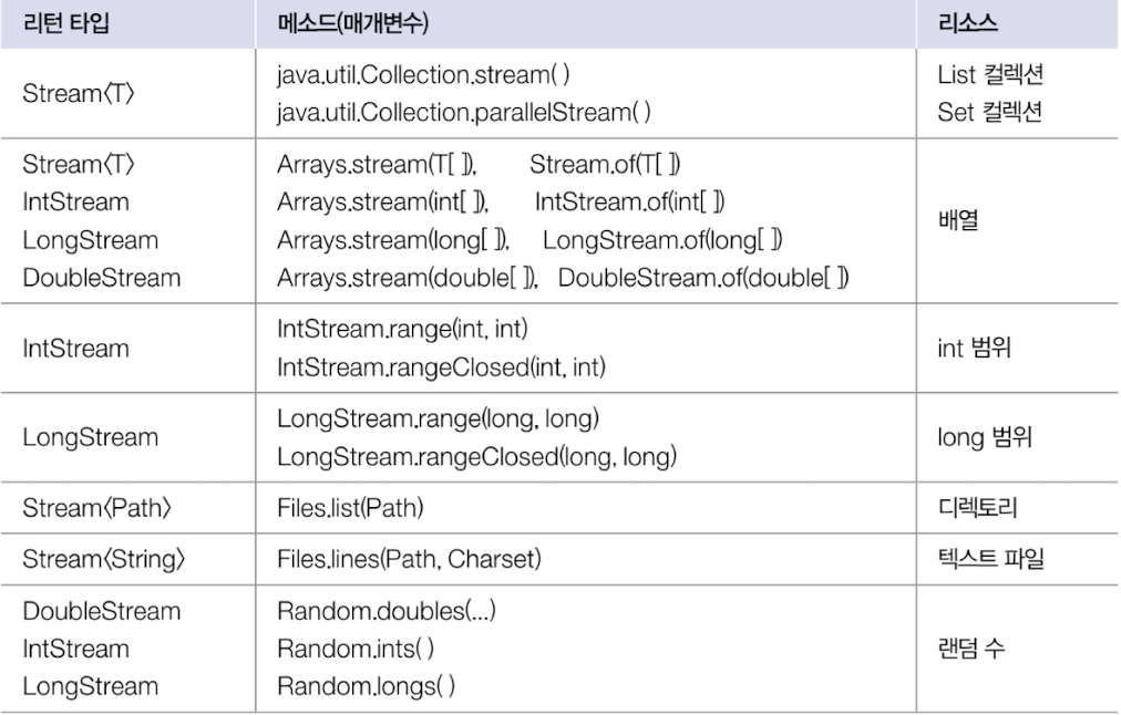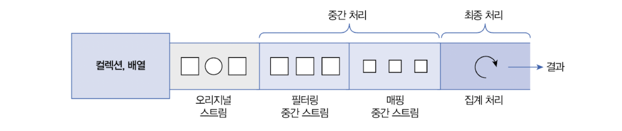 - Java 8부터 컬렉션 및 배열의 요소를 반복 처리하기 위해 스트림 사용 가능