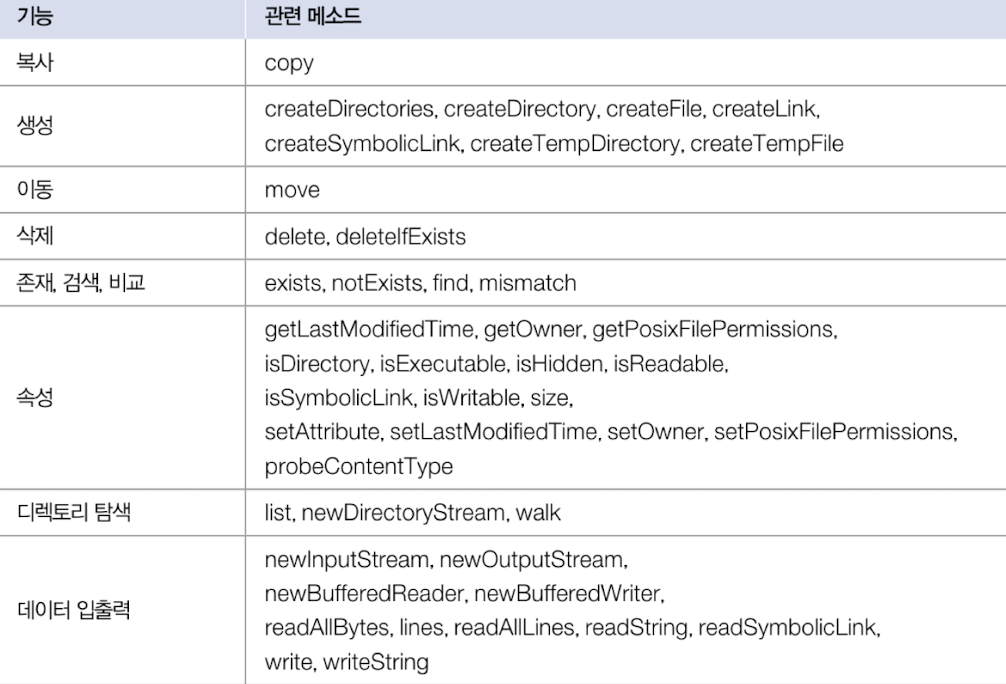 - Files 클래스는 static methods로 구성되어 있어, File 클래스처럼 객체로 만들 필요 X