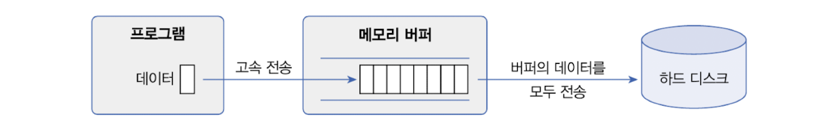 - write() method 호출 -> 버퍼에 바이트를 우선 저장, 버퍼가 차면 순서대로 바이트를 출력