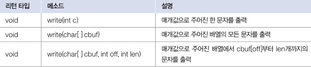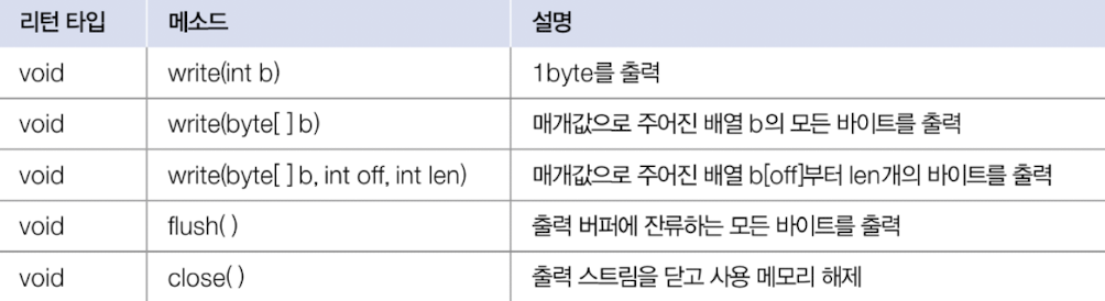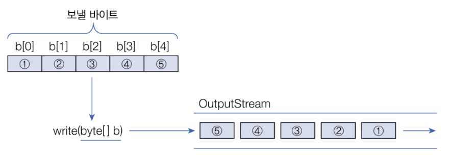- write(byte[] b): 매개값으로 주어진 배열의 모든 바이트를 출력