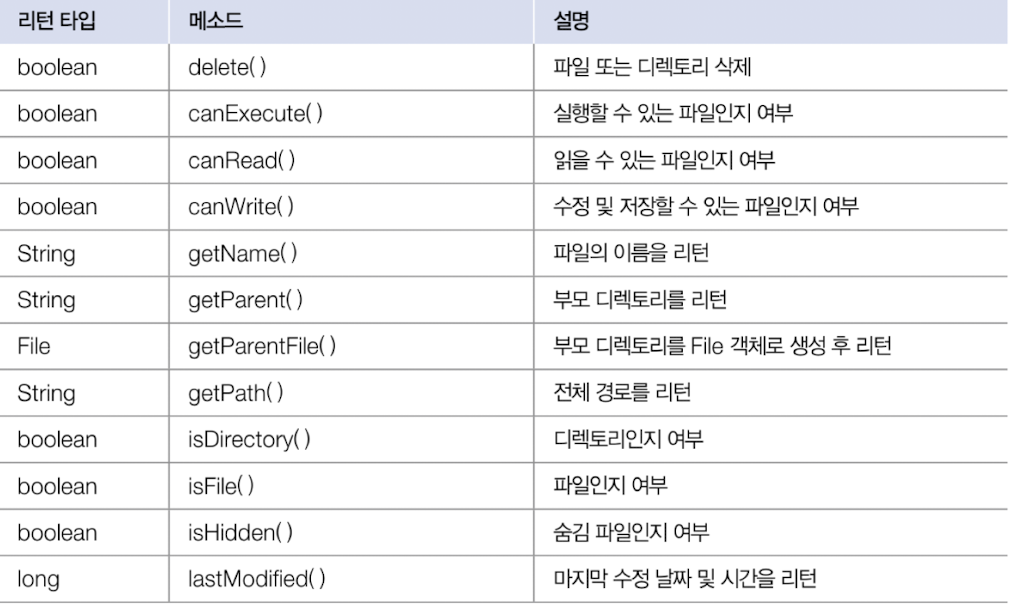 boolean isExist = file.exit(); // 파일이나 폴더가 존재하면 true 리턴
