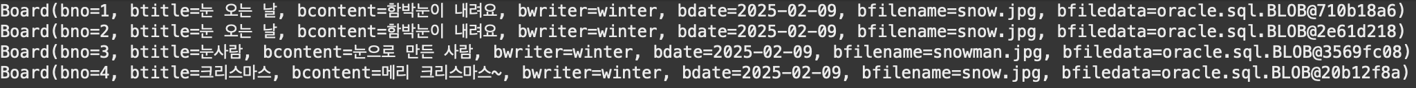 게시물 정보가 저장되었을 경우(rows가 1일 경우), getGenerateKeys() method로 ResultSet을 얻고, getInt() method로 bno를 얻음