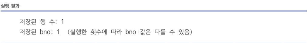 // 두 번째 매개값은 INSERT문이 실행된 후 가져올 컬럼 값 ( bno 컬럼 값을 가져옴 )