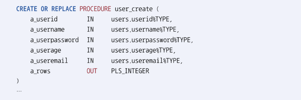 # user_create 프로시저 생성