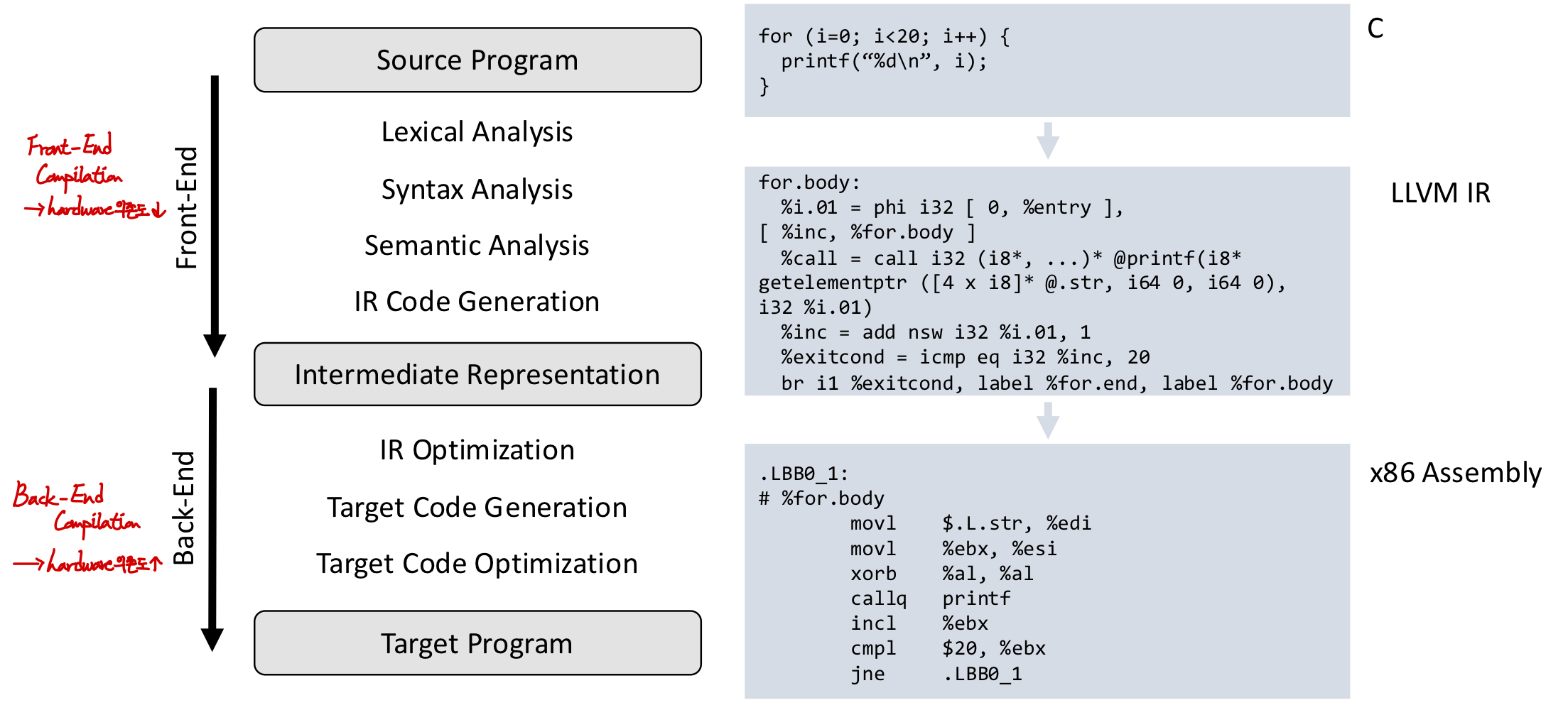 - 컴파일된 프로그램은 hardware에서 직접적으로 실행 가능