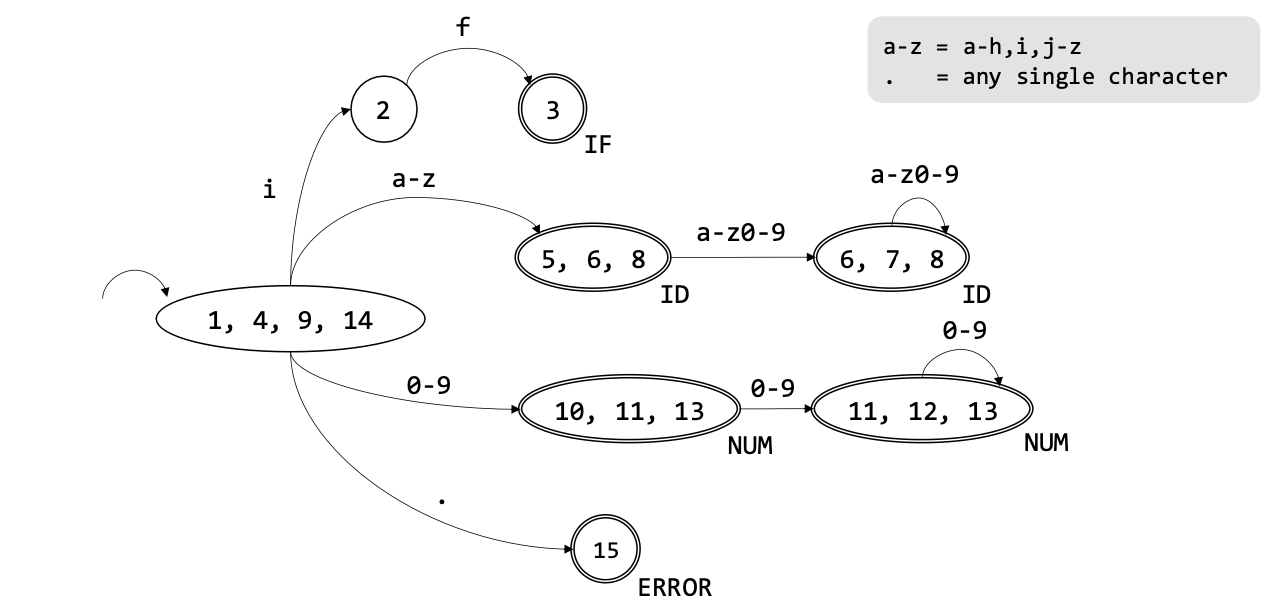 -> symbol i에 대해서 start state로부터 i, a-z, error로 각각 향할 수 있음