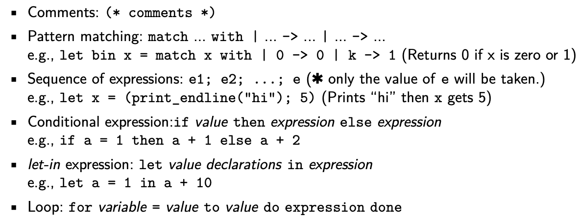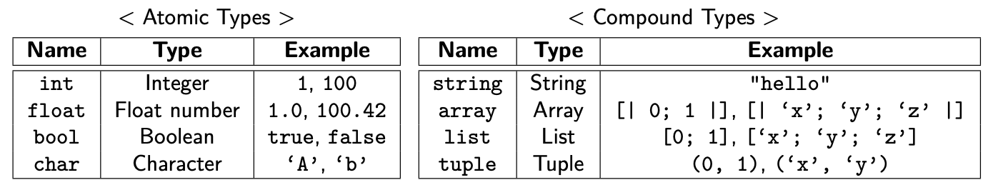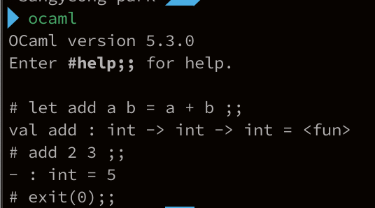 - OCaml은 정적 타입 언어 -> 변수와 함수의 타입이 Compile time에 결정됨