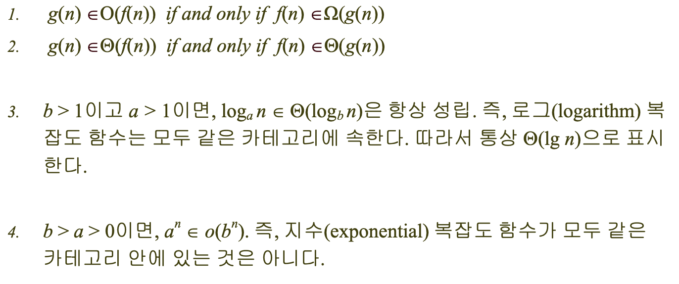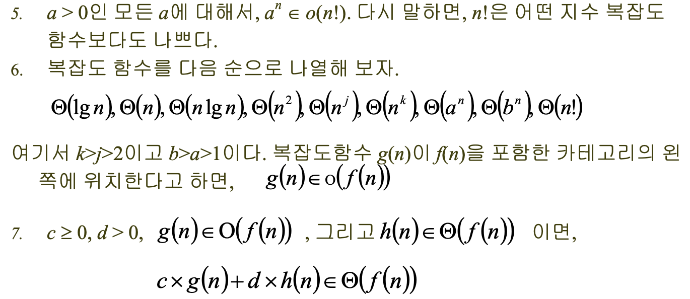 - complexity function: 음이 아닌 정수가 주어지면, 음이 아닌 실수를 내주는 함수 -> 정수 n을 시간으로 매핑!!