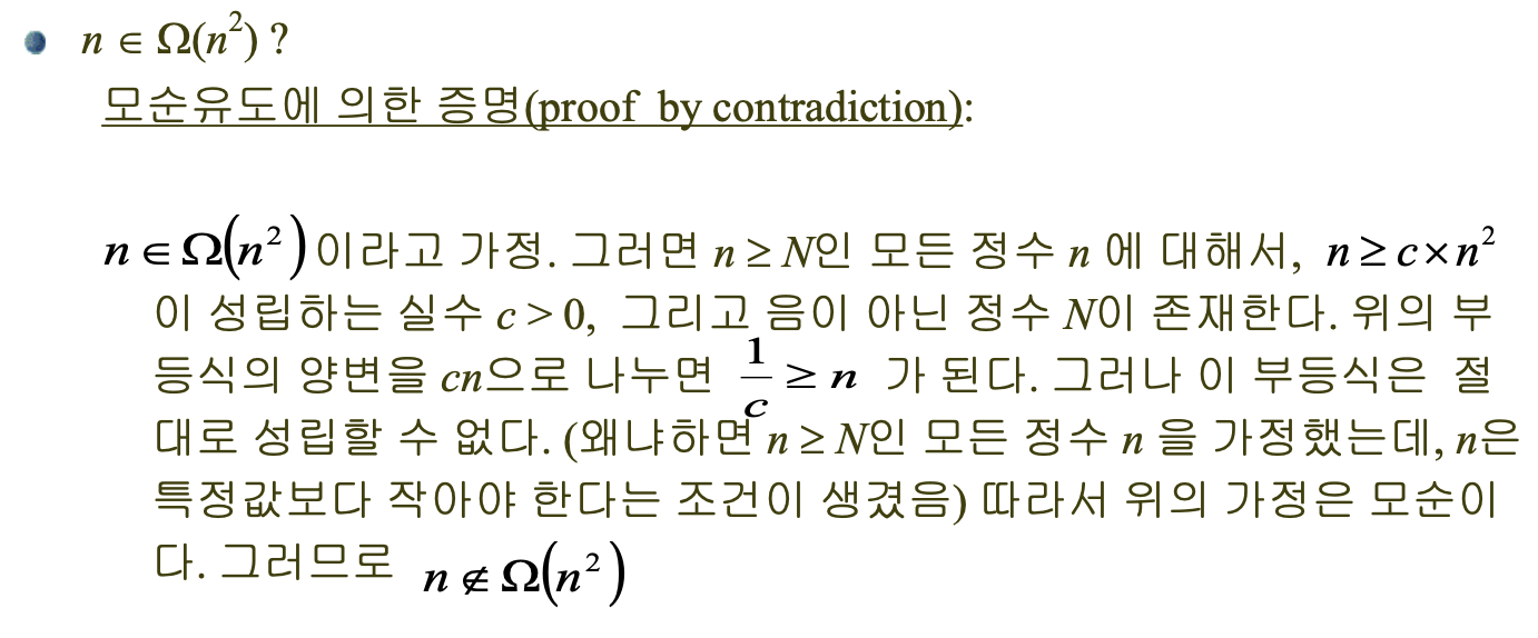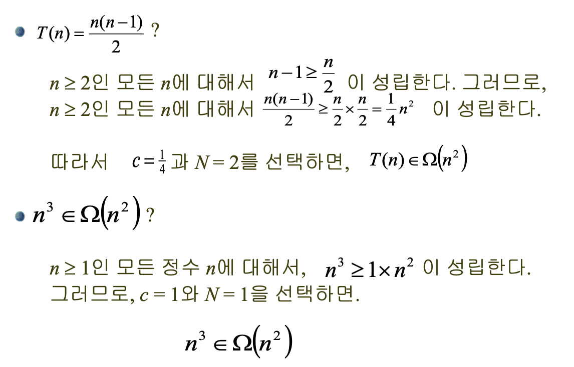 - ex) 함수 g(n)이 Ω(n^2)에 속한다.