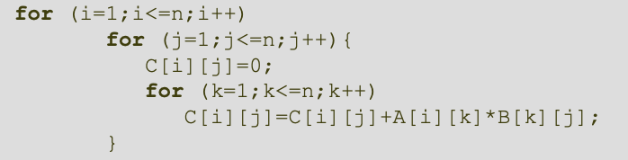 - 단위 연산: 가장 안쪽 for loop에 위치한 곱셈