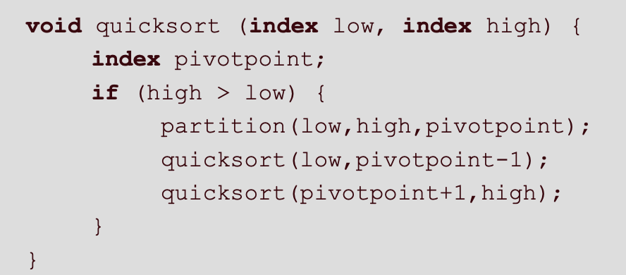 - 피벗 아이템의 우측: 크기가 n-1인 배열