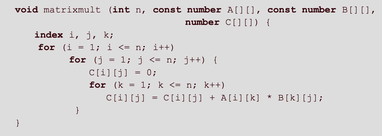 - 문제: n이 2의 거듭제곱일 때, n x n 크기의 두 행렬의 곱을 구하시오.