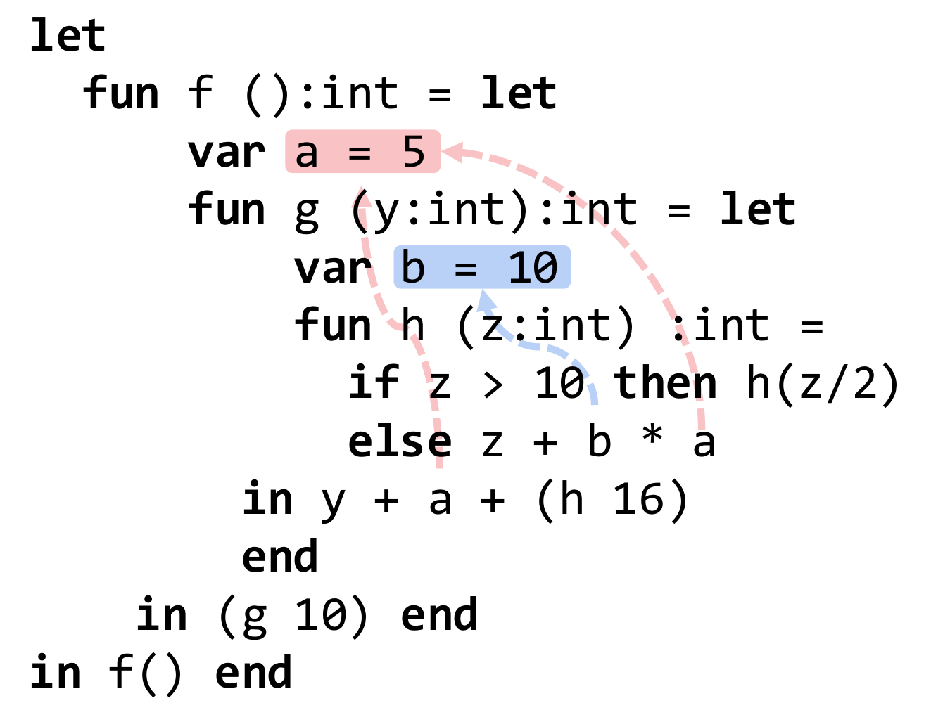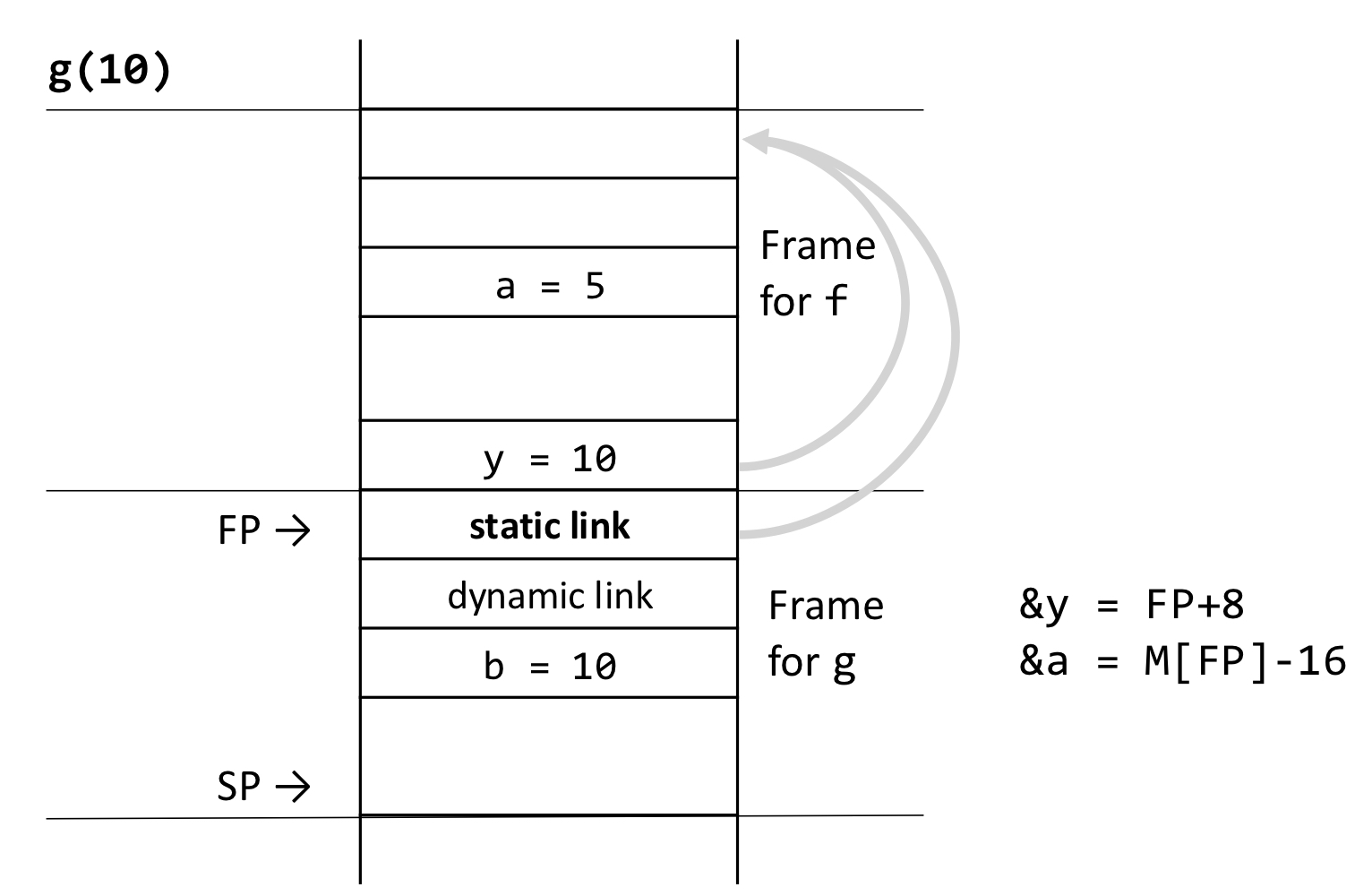 - 현대 언어의 nested function의 경우 local variables를 heap에 저장해야 함
