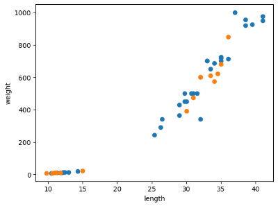 fish_data = [[l, w] for l, w in zip(fish_length, fish_weight)]