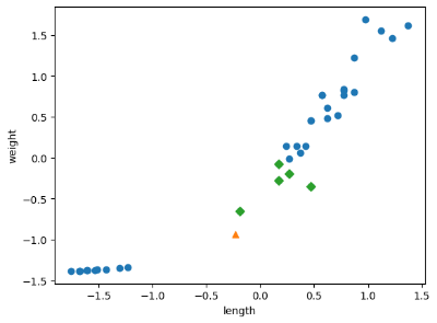 -> 아까와는 달리 문제의 샘플의 이웃샘플이 모두 도미로 판정된다. 따라서 모델은 해당 샘플을 도미라고 판단한다.