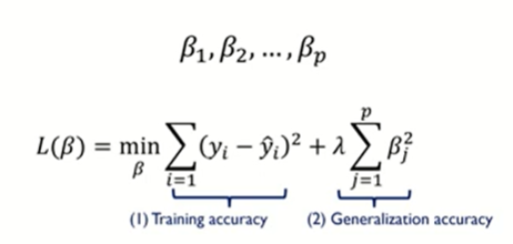- Regularization Method 방법 중 하나로, 회귀 계수의 제곱을 기준으로 규제를 적용한다.
