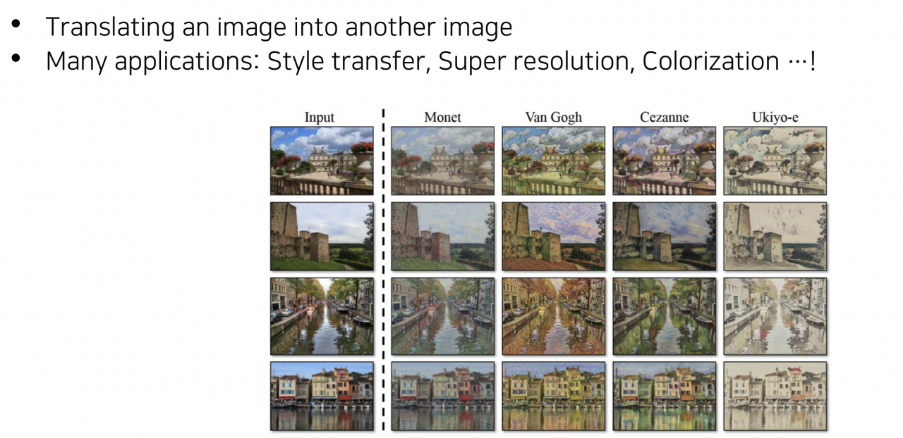 - ex) 저음질의 audio -> 고음질의 audio, 한자로 이루어진 중국어 문장 -> 영어 문장, title과 subtitle -> 글 생성