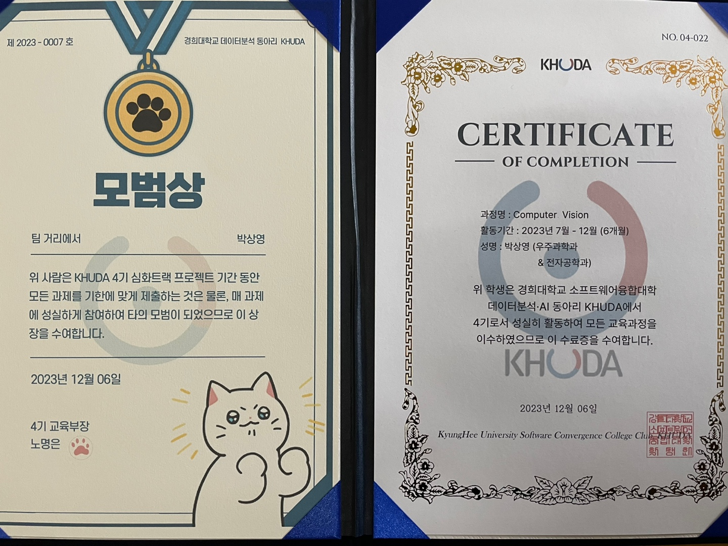 사회에 나와서 시작한 첫 번째 활동인 KHUDA, 군대 전역하기 직전부터 시작해서 이번 활동을 마지막으로 마무리하게 됐다. 막 전역하고 사회성이 부족했던 내가 다시 사람들과 연결되는 좋은 계기였고, 실제로 다양한 사람들을 만나면서 인간적으로도 학술적으로도 많이 배우고 성장할 수 있었던 것 같다.
