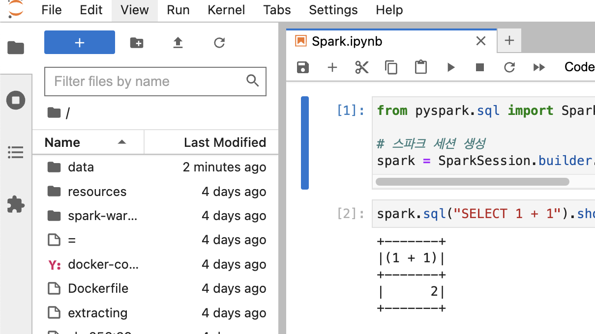 -> 처음에는 오류가 발생했는데, 스파크세션이 이미 4040포트를 사용하고 있어서 발생한 오류였다.