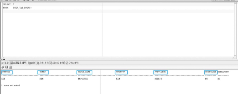 - USER_TAB_PRIVS 데이터 사전 뷰 혹은 DBA_TAB_PRIVS 데이터 사전 뷰를 통해서 검색할 수 있음
