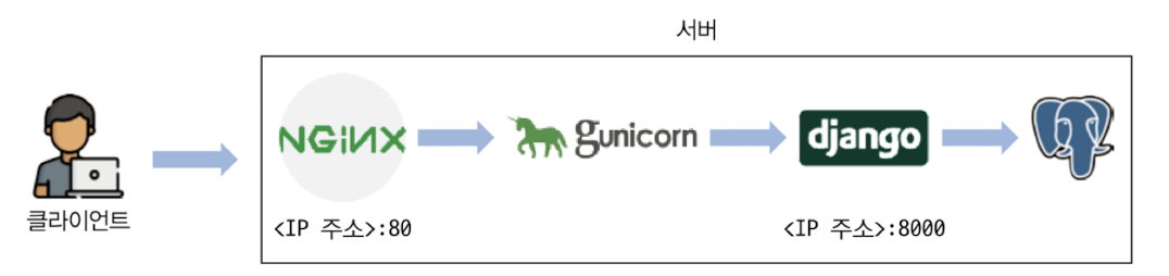 Nginx와 django는 컨테이너 형태로 실행, PostgreSQL은 로컬에 설치한 후 연동