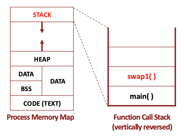 3. 하지만 swap4_a와 swap4_b라는 변수 자체의 메모리 주소는 그대로 유지 -> 이는 main 함수에서 선언된 변수이기 때문(main 함수가 실행되는 동안 메모리 주소 고정)