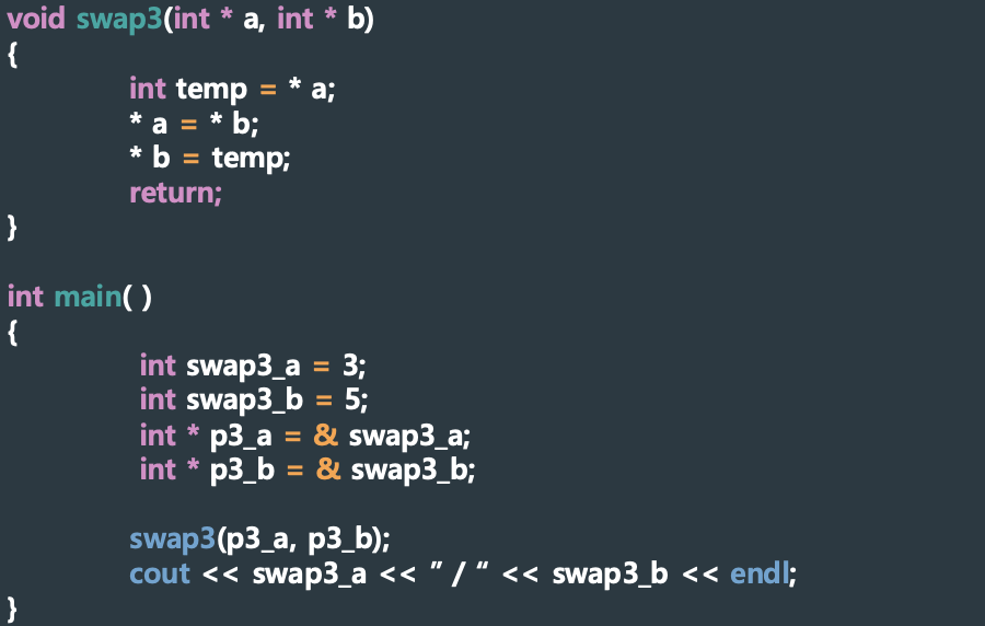 2. swap4(&p4_a, &p4_b)를 호출하면 p4_a와 p4_b가 가리키는 주소가 서로 바뀜