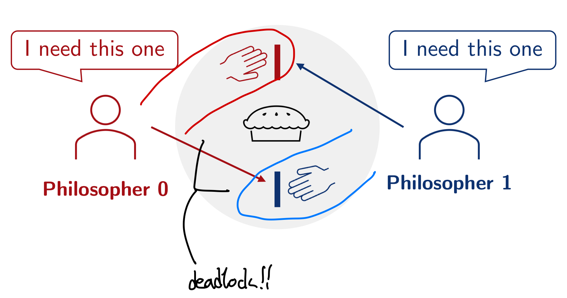 wait(chopstick[(i + 1) % 2]);