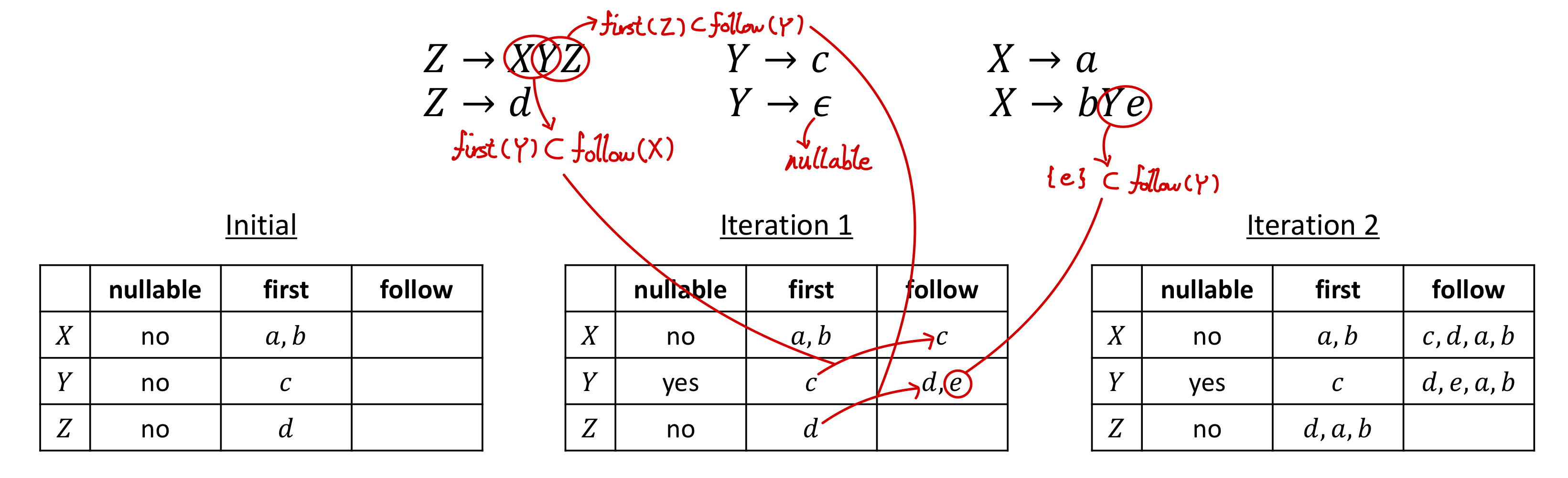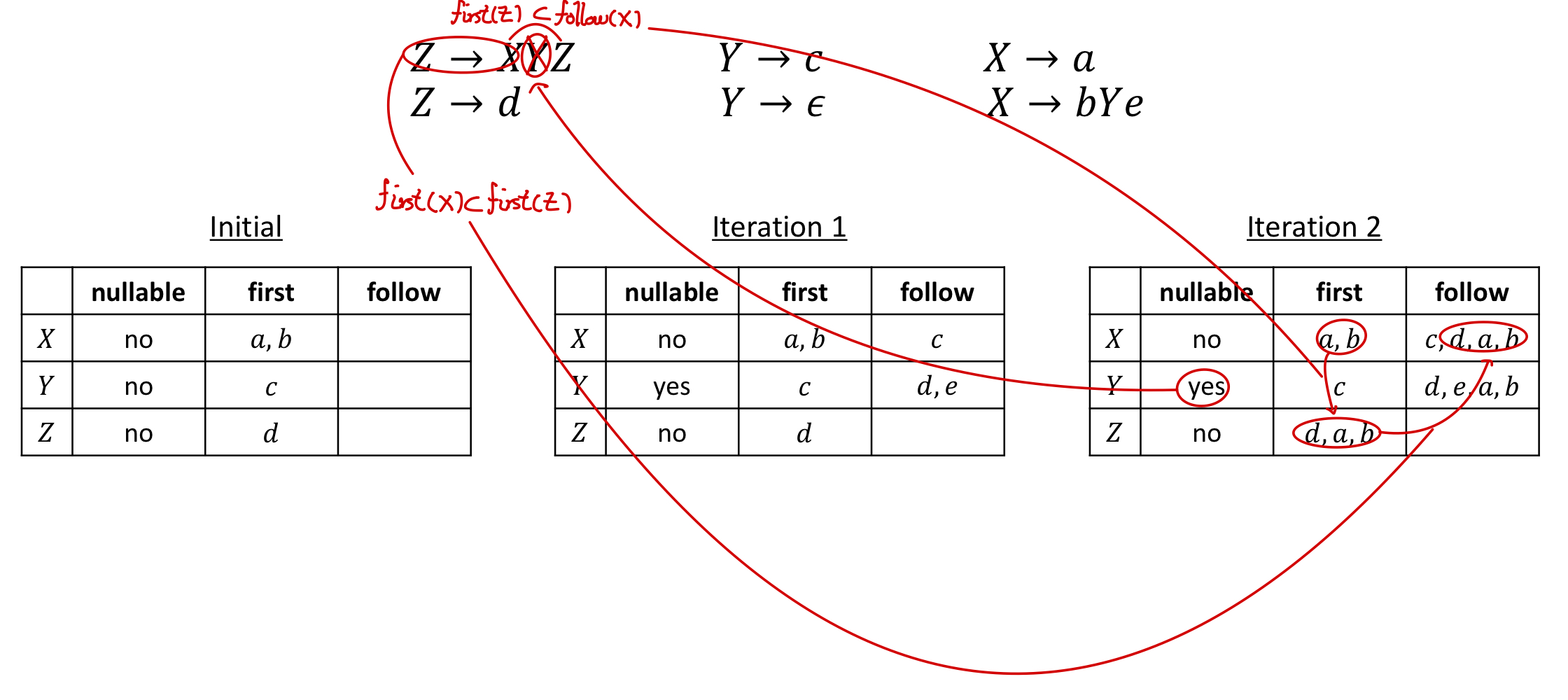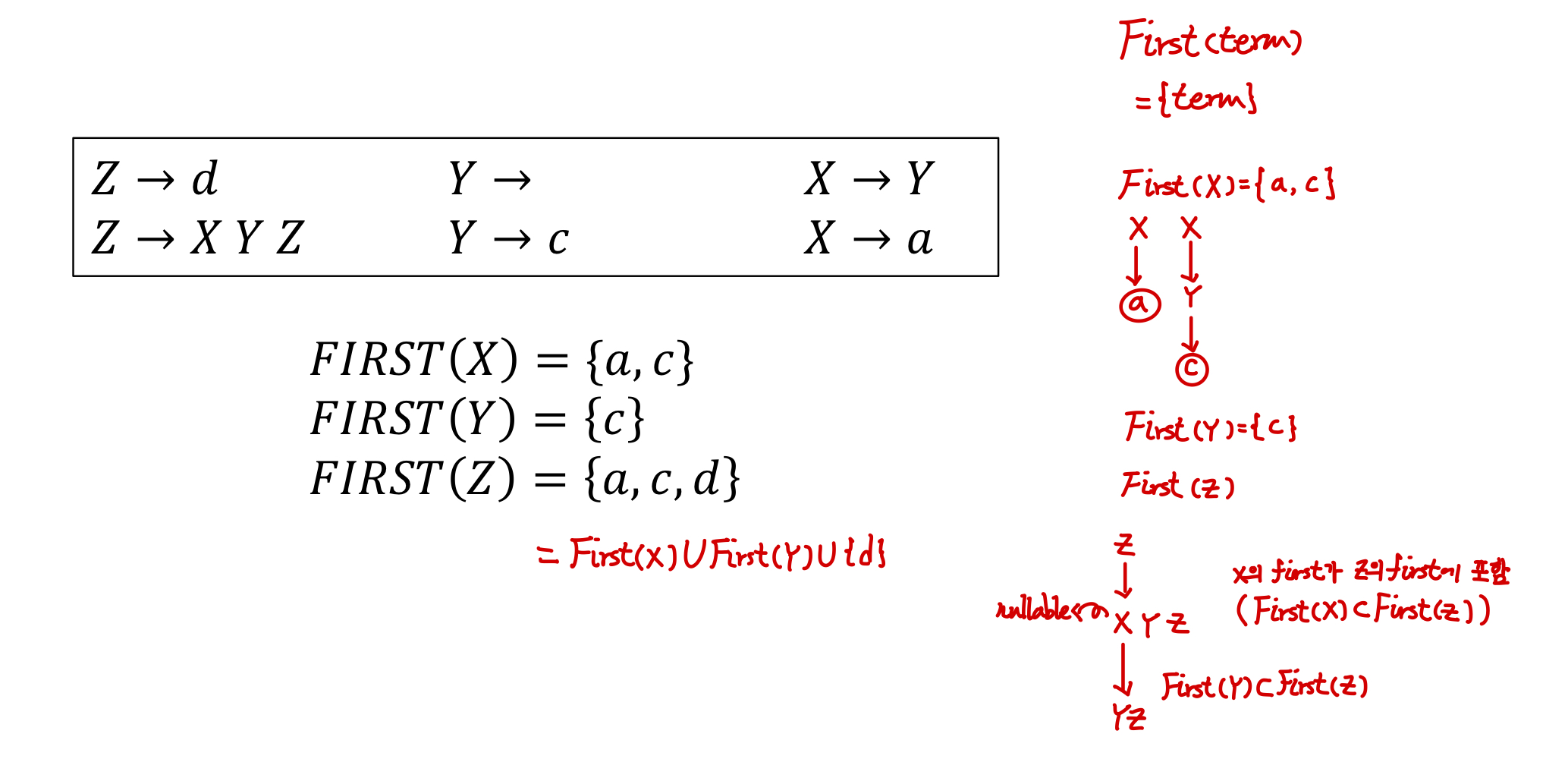 - Y가 nullable이므로, FIRST(Z)는 FOLLOW(Z)에 포함