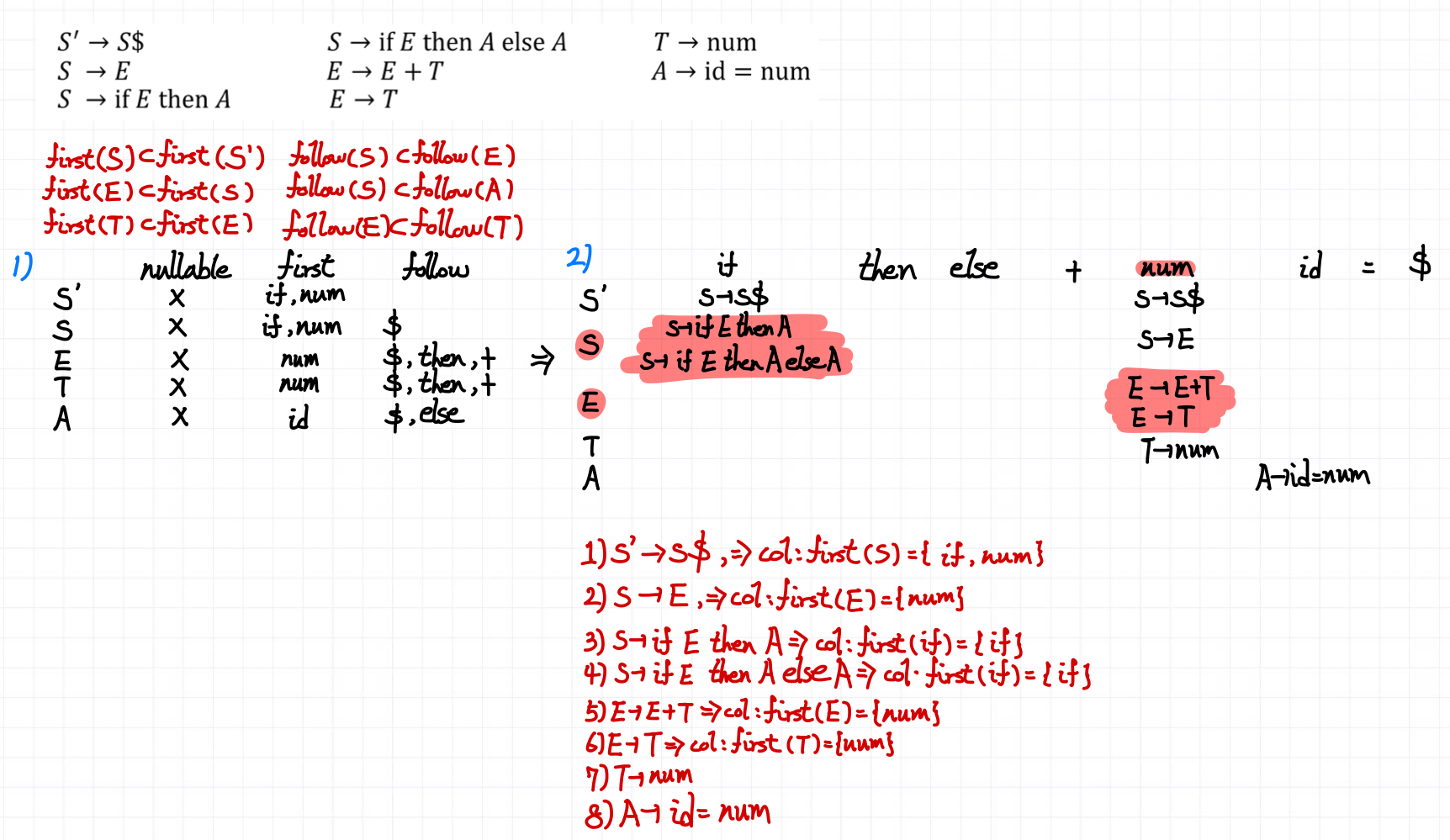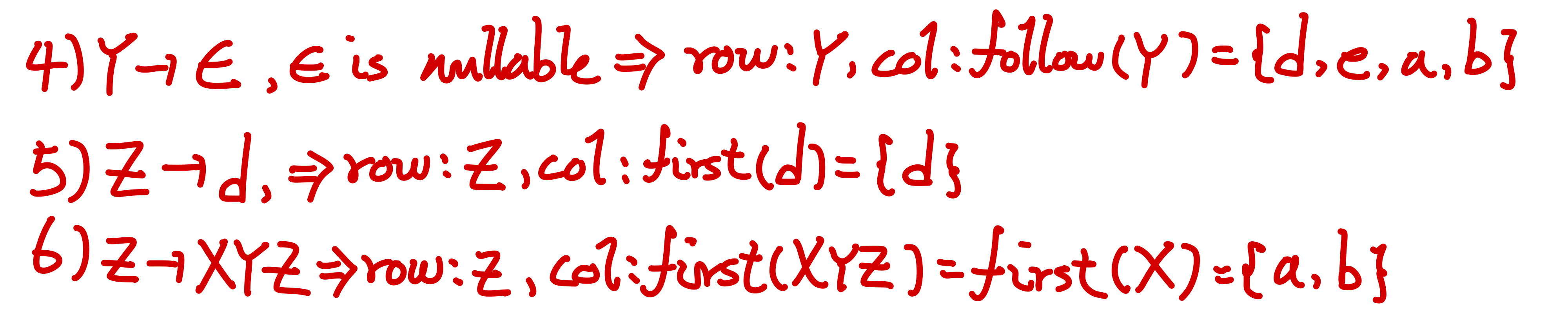 - if 𝛾 is nullable -> row: S, col: FOLLOW(𝛾)에 포함되는 모든 요소