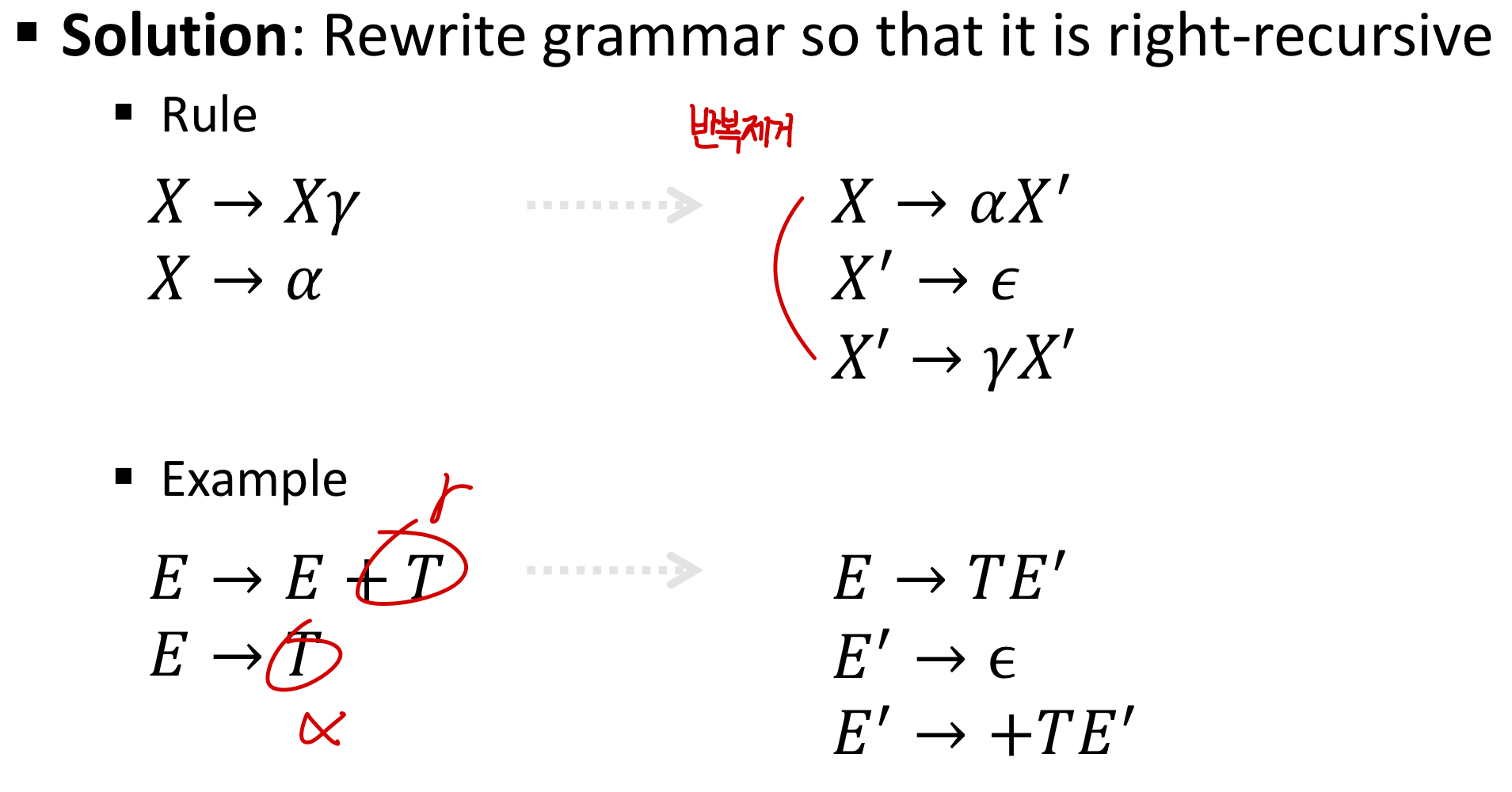 - 각 subexpression의 첫 번째 terminal symbol만 보고, 어떤 production을 사용해야 할지 결정할 수 있을 때 사용