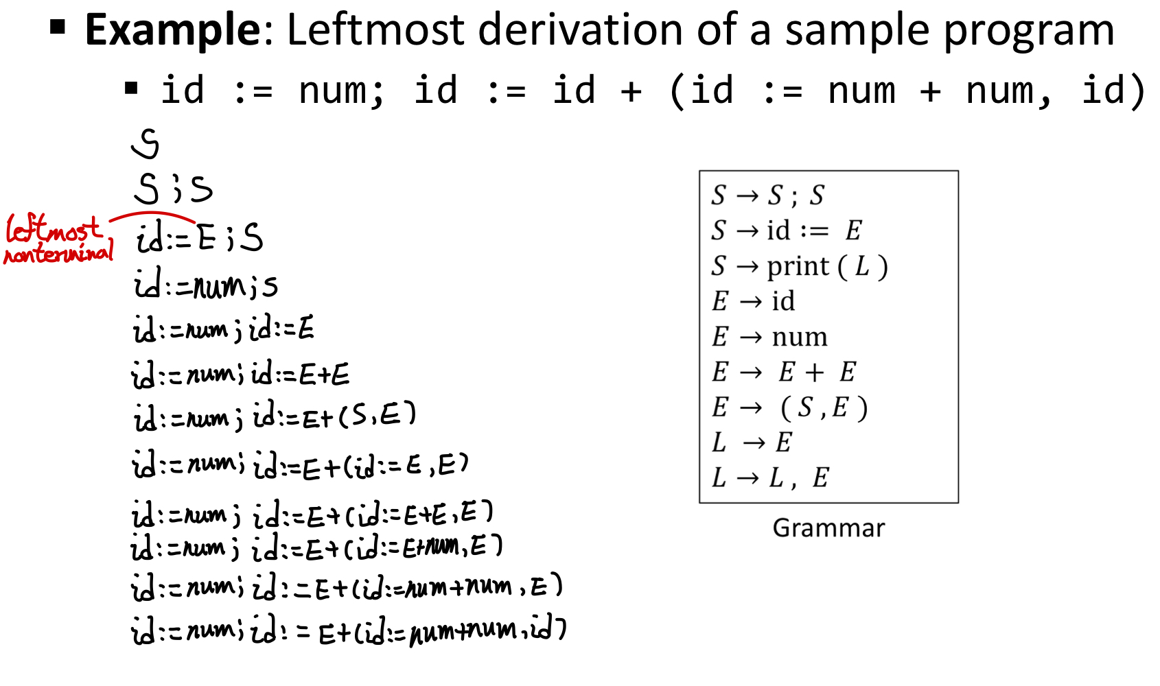 - Leftmost Derivation: leftmost nonterminal 교체 in each step
