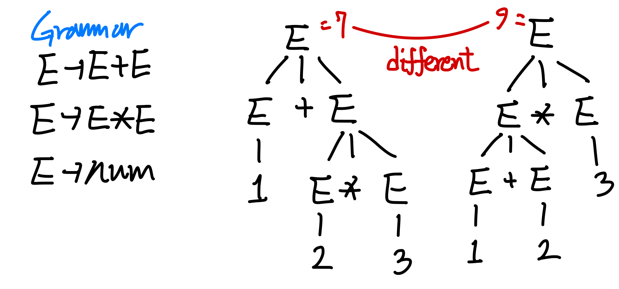 - Different parse trees may have different meanings -> resulting in different interpreted results