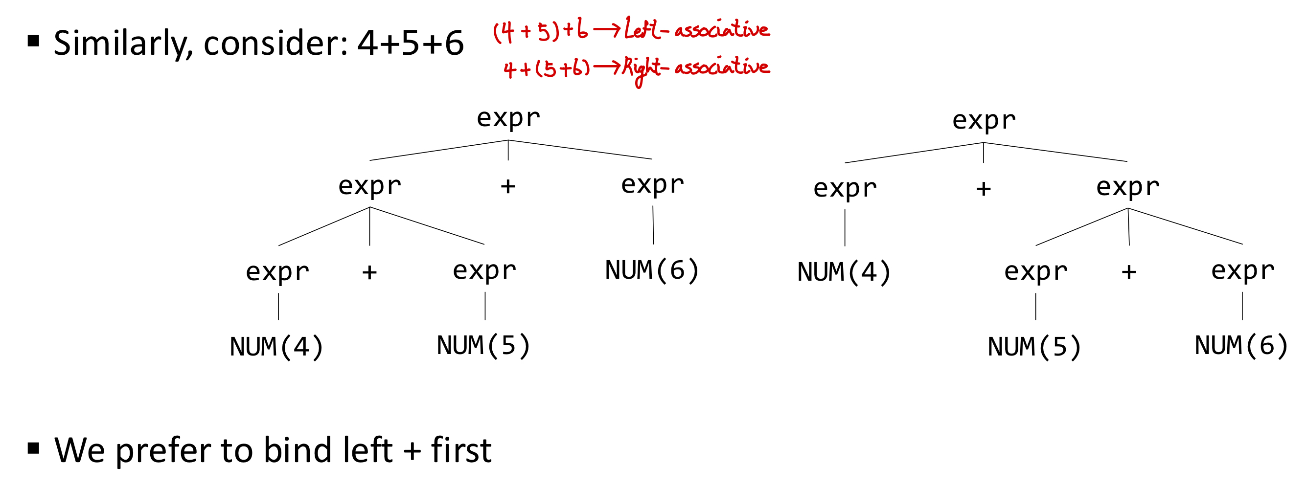 - Ambiguous Grammar: 같은 expression에 대해서 2개 이상의 parse tree가 존재하는 grammar